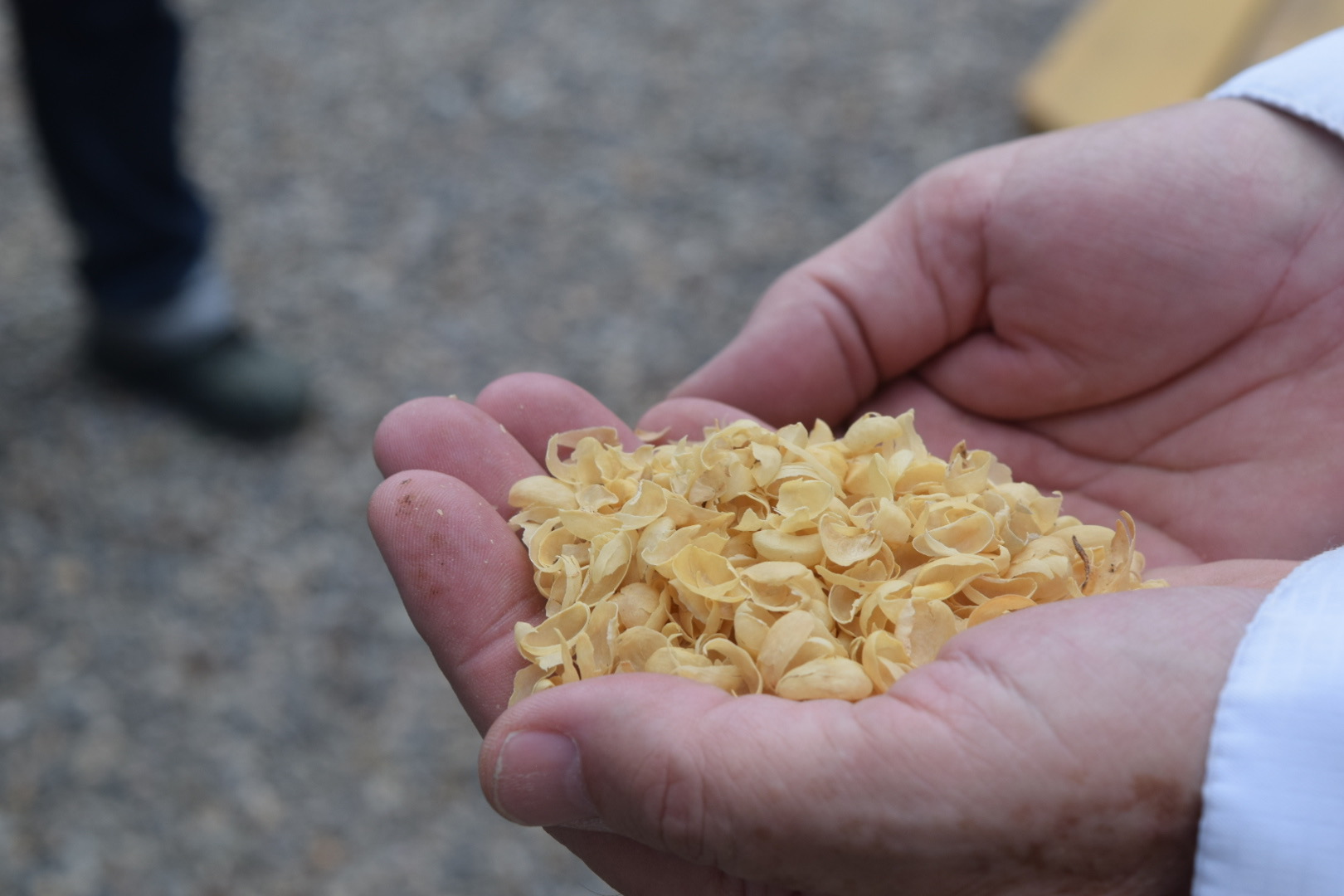 (はがされたパーチメントは倉庫の外に排出され、一か所に集められている。これを燃料として販売しているとは驚きである)