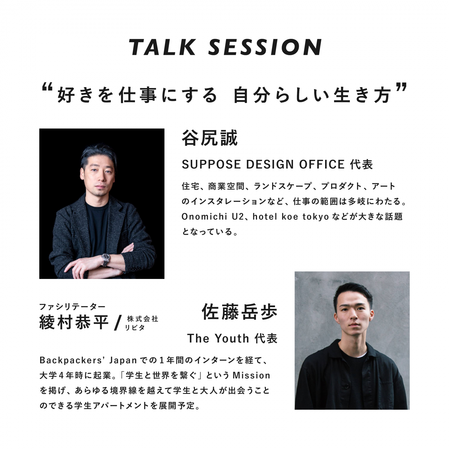 【TALK SESSION】17:30-19:00(17:00open)