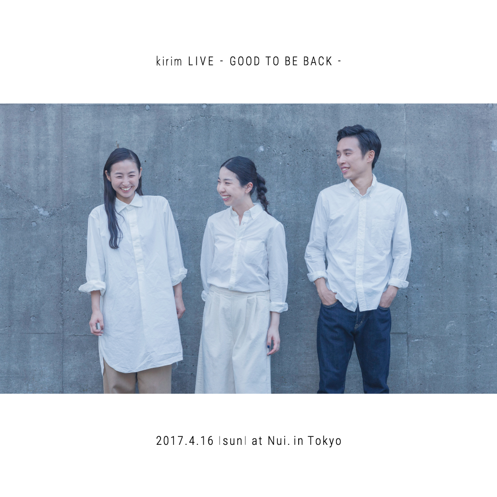 4月16日にkirimのライブ「GOOD TO BE BACK」を開催いたします。